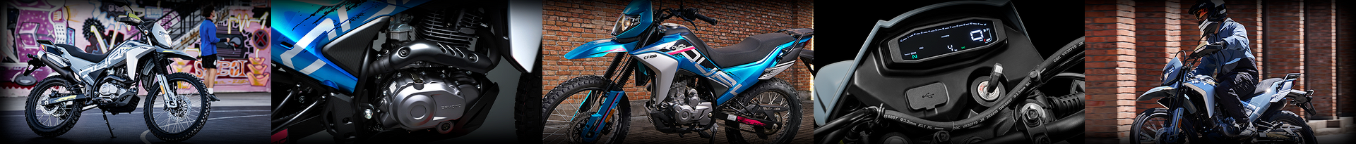Una motocicleta de alta calidad para desplazamientos diarios con resistencia, agilidad, economía y potencia. Inspirada en la estética adventure de CFMOTO. Carrocería aerodinámica que reduce la resistencia al viento, manejo ágil, equilibrio entre flexibilidad y estabilidad.