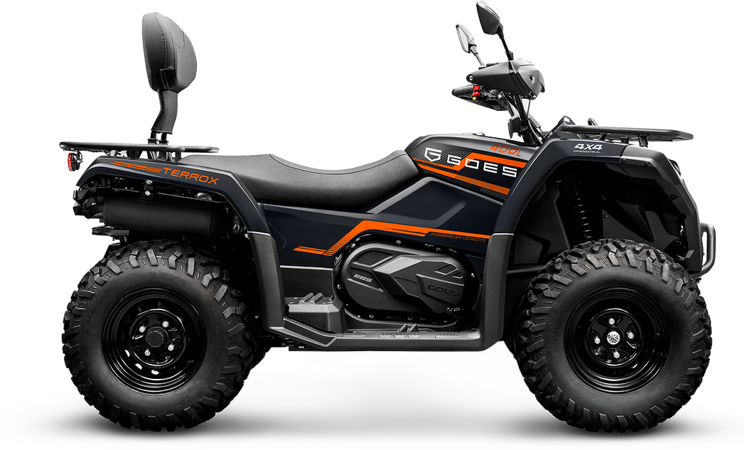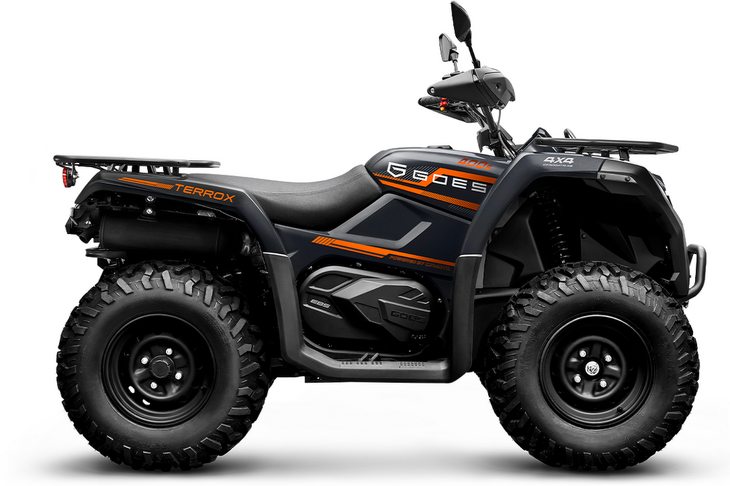 GOES TERROX 400S es el ATV que combina potencia, resistencia y estilo para llevarte más allá de lo ordinario. Con un diseño robusto y una tracción preparada para todo tipo de terrenos, es el aliado perfecto tanto para tus jornadas de trabajo como para tus aventuras al aire libre, ofreciéndote seguridad, confort y la libertad de explorar sin límites.